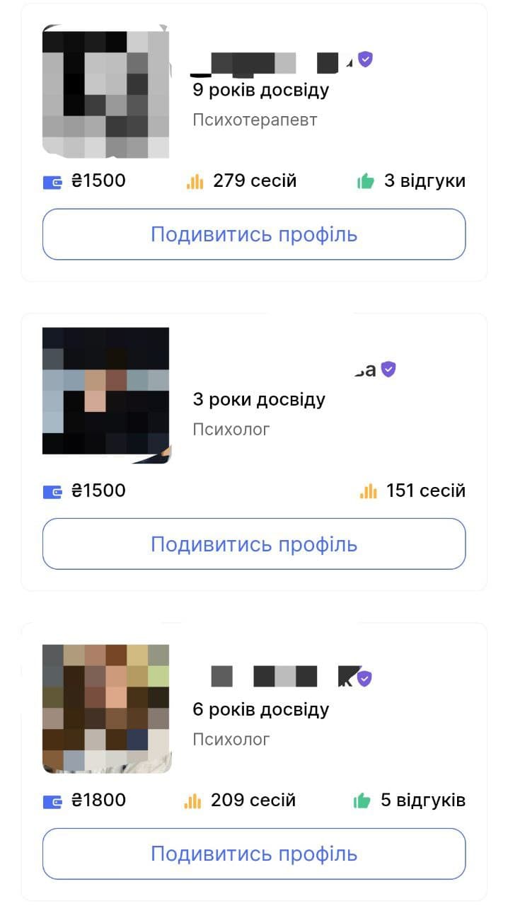 Приклад розцінок психологів на одній із платформ для психологів